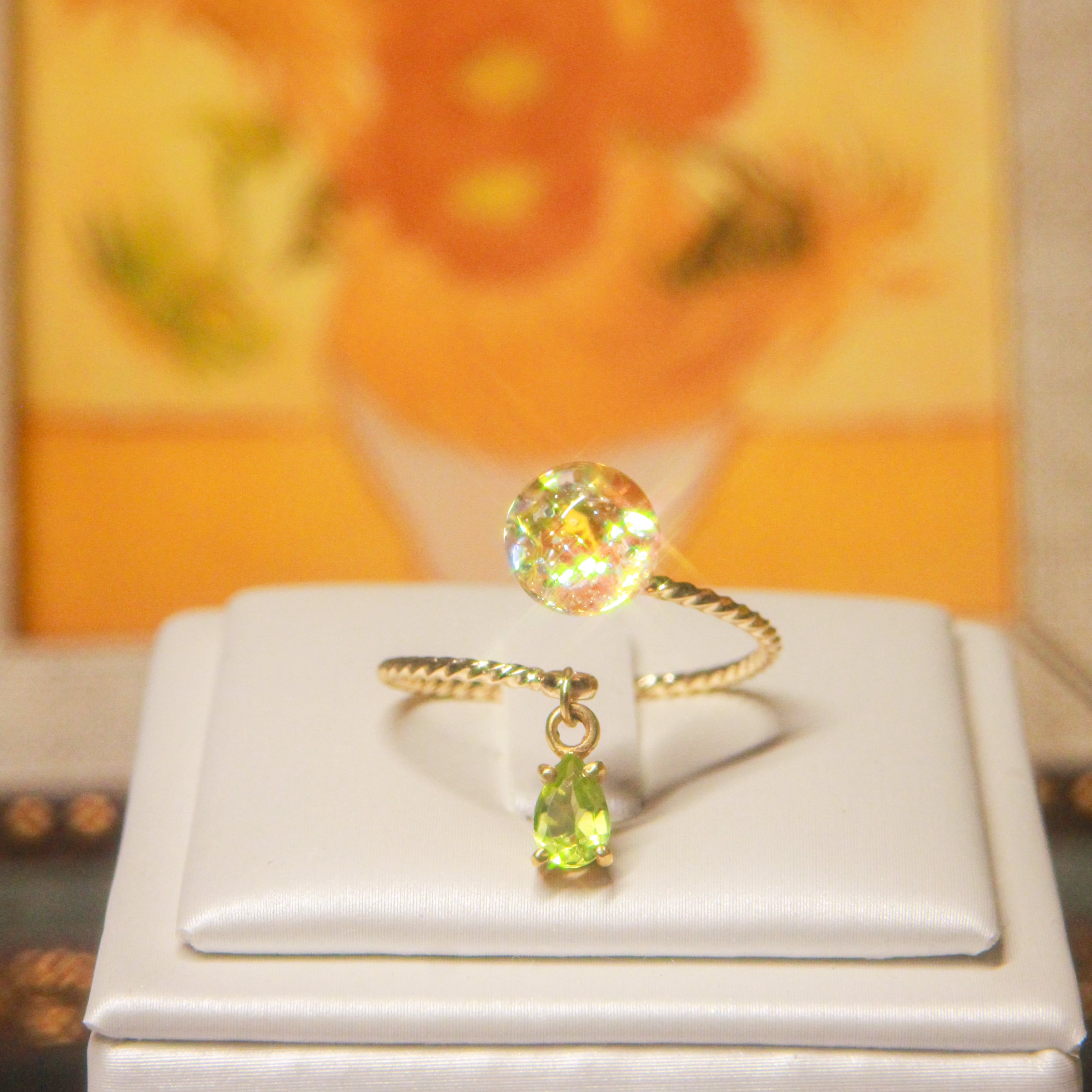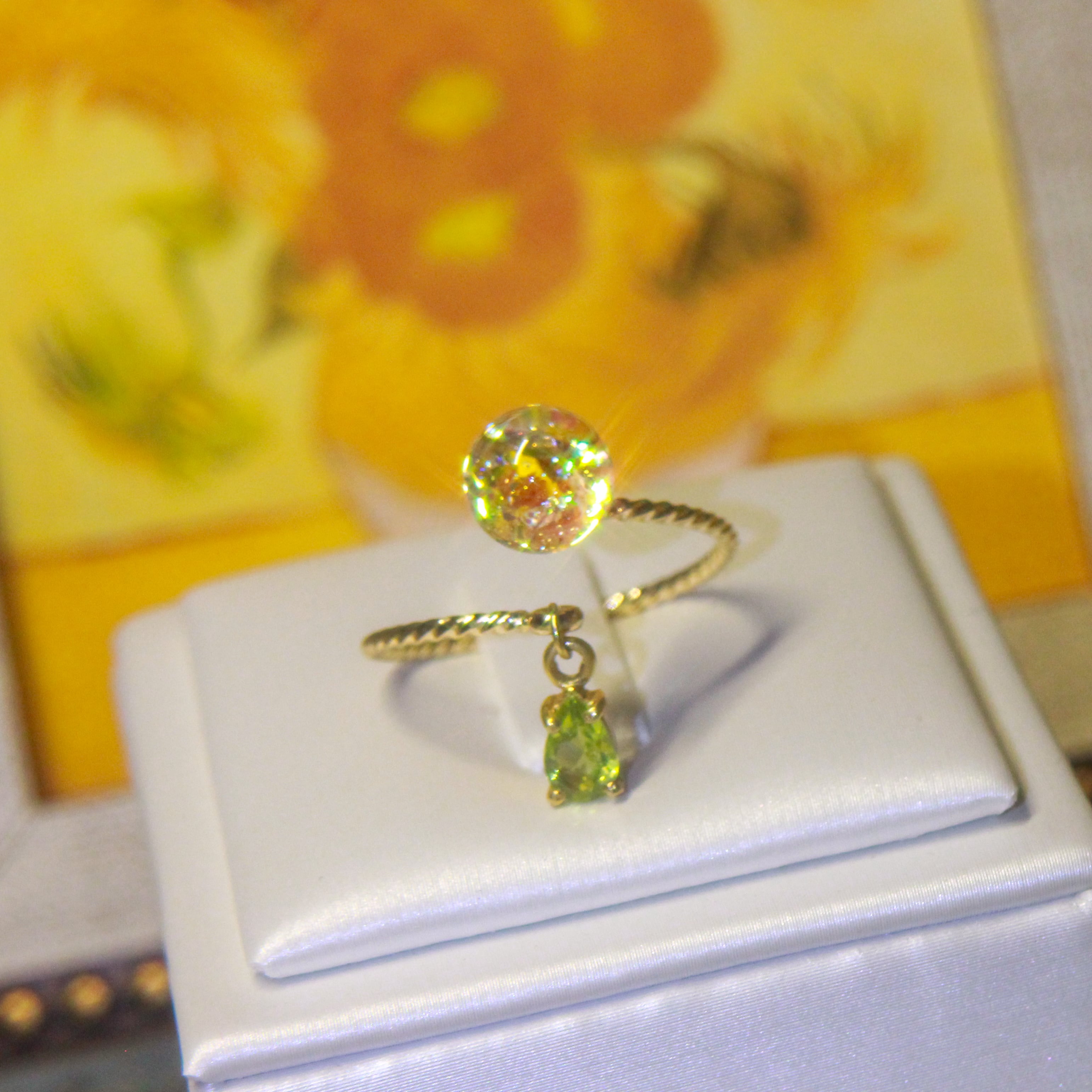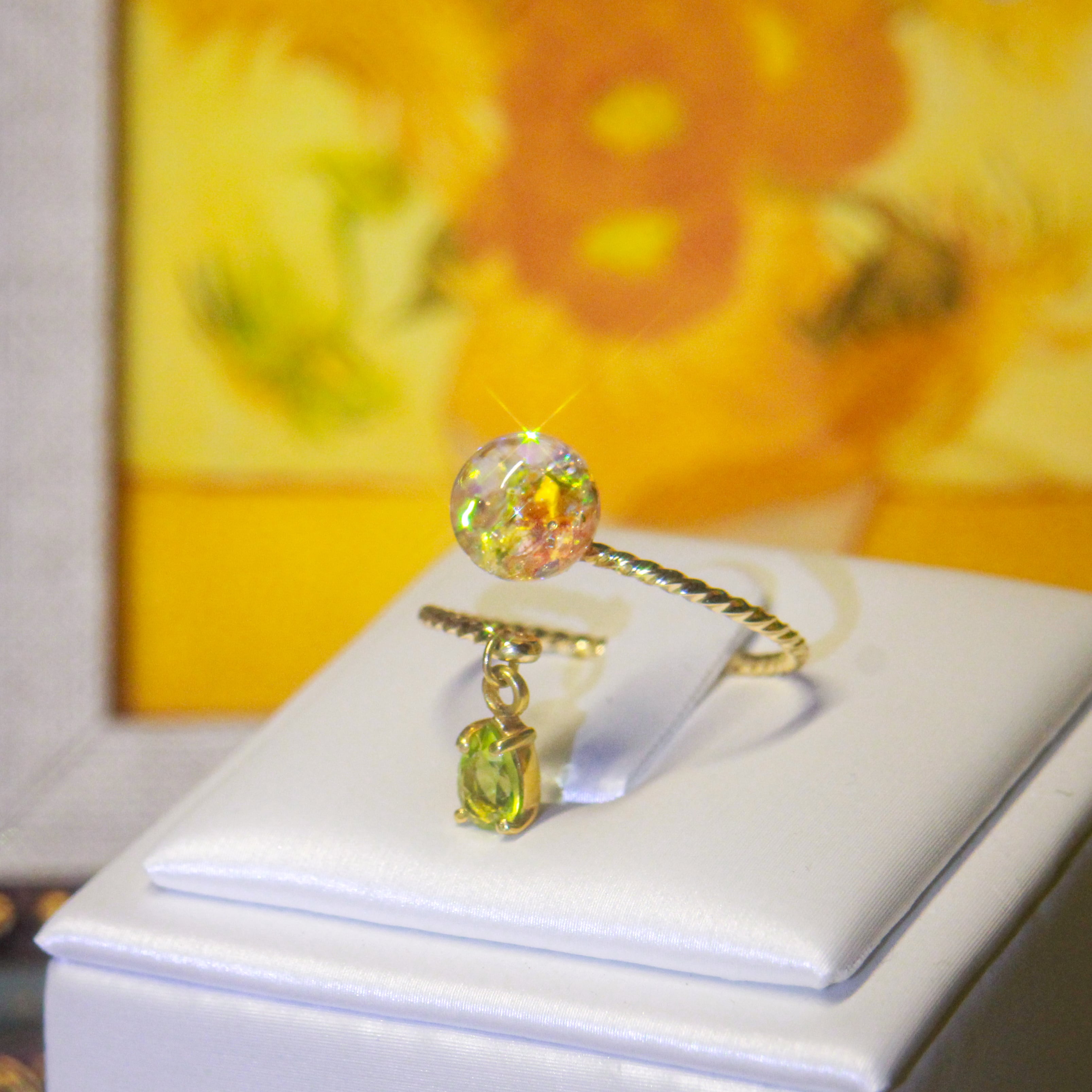 ペリドット揺れる Lumière ring - mètèore ゴッホ『ひまわり』を纏うリング 【受注制作】サージカルステンレス