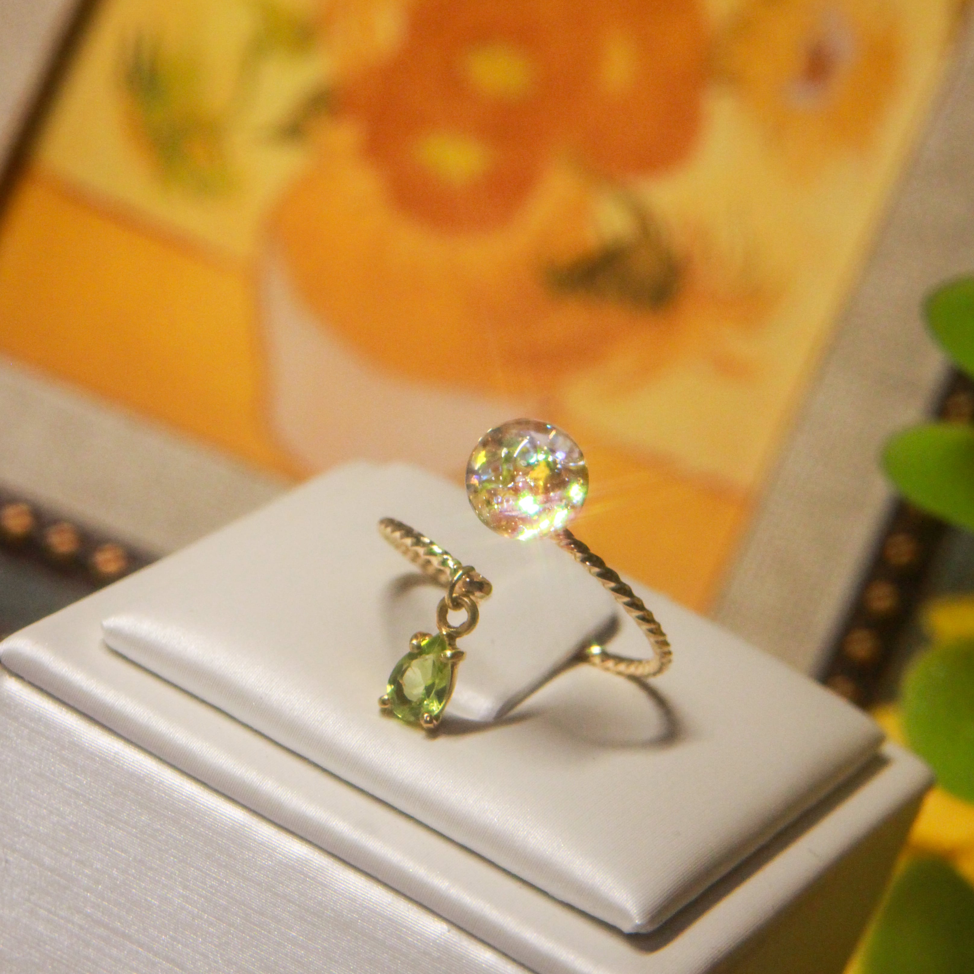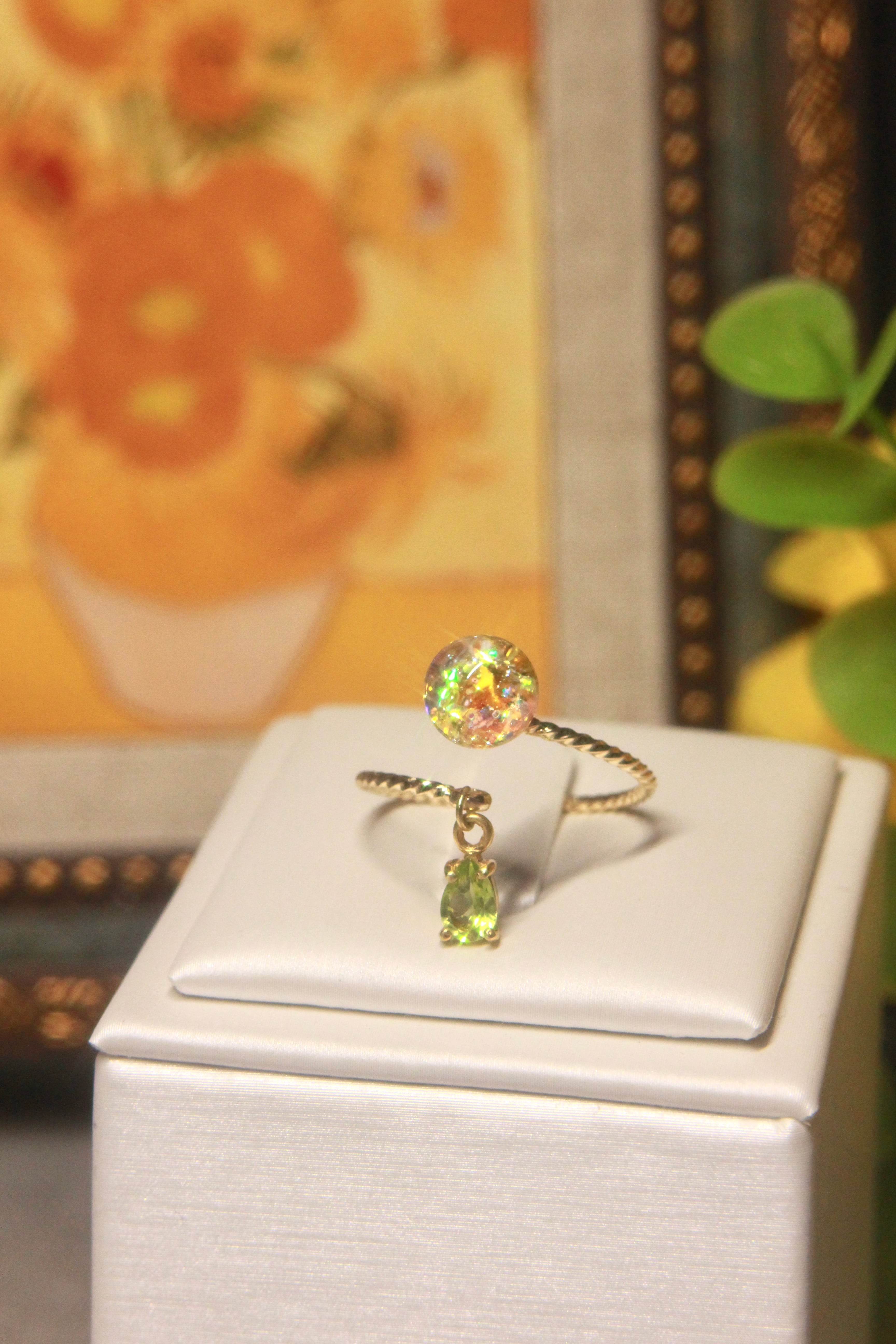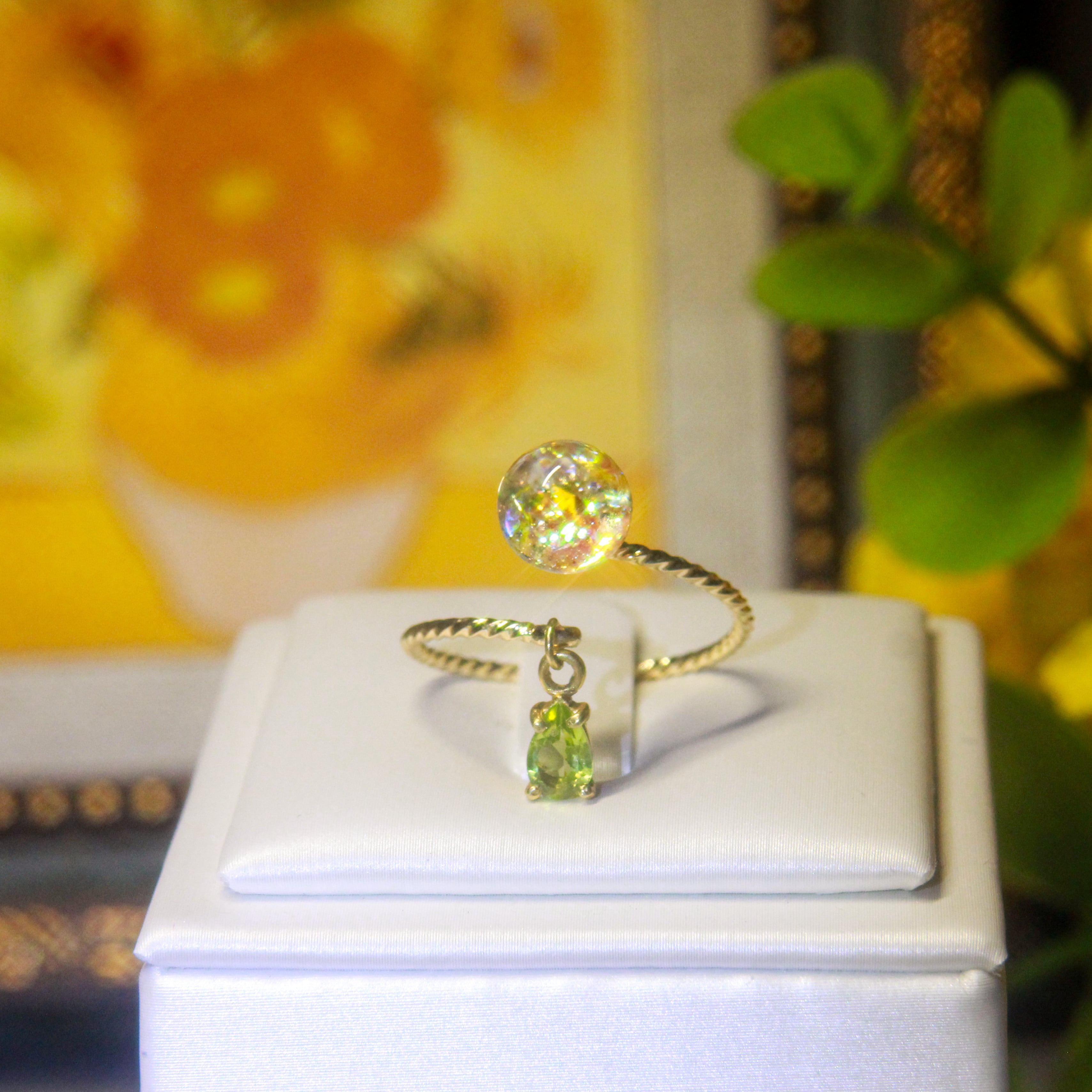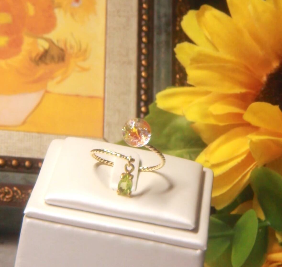 ペリドット揺れる Lumière ring - mètèore ゴッホ『ひまわり』を纏うリング 【受注制作】サージカルステンレス