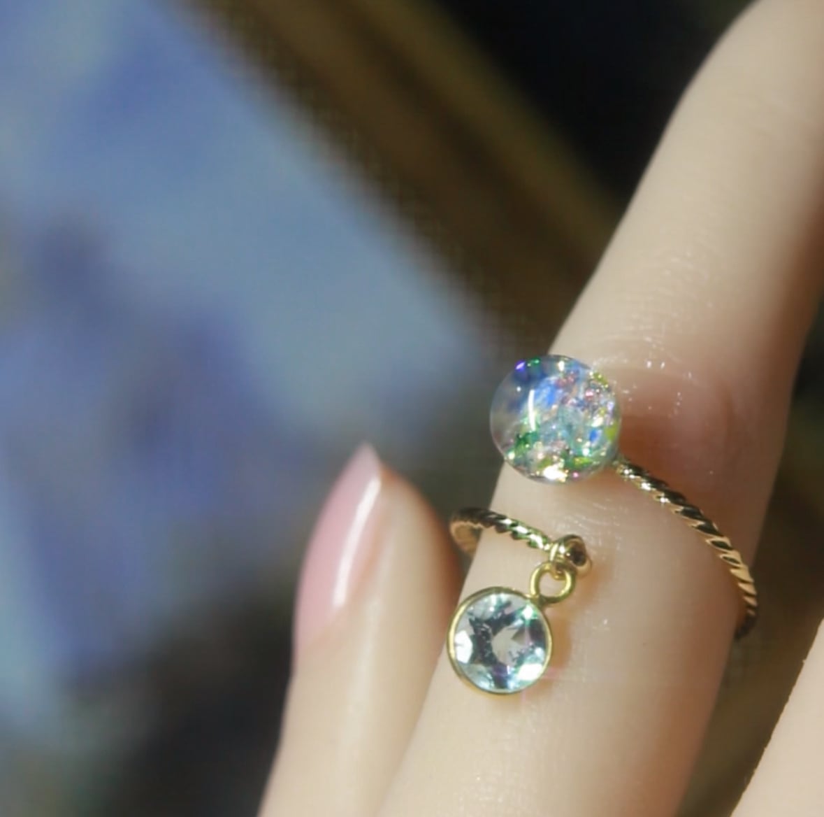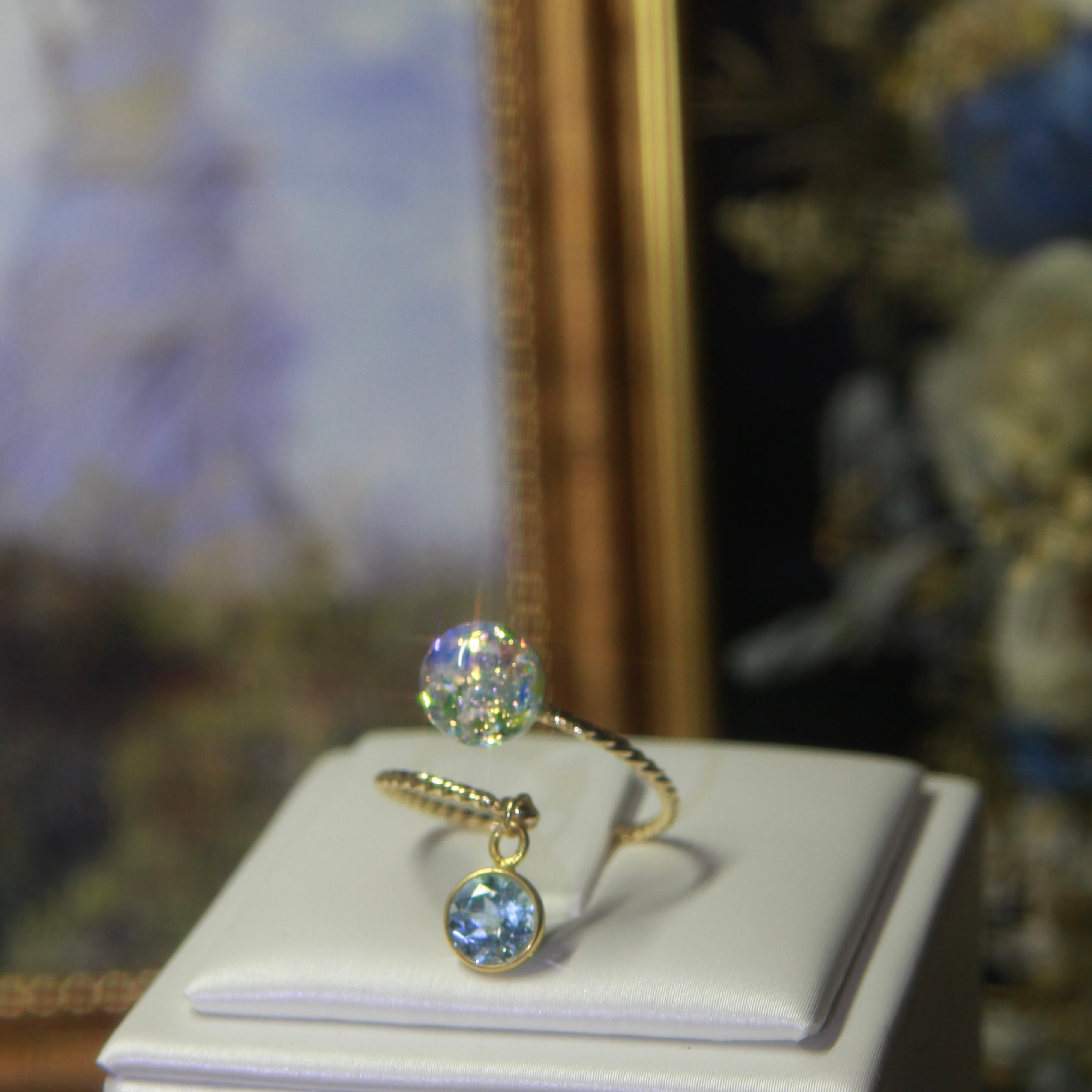 ブルートパーズ揺れる Lumière ring - mètèore モネ『散歩、日傘をさす女』を纏うリング 【受注制作】サージカルステンレス