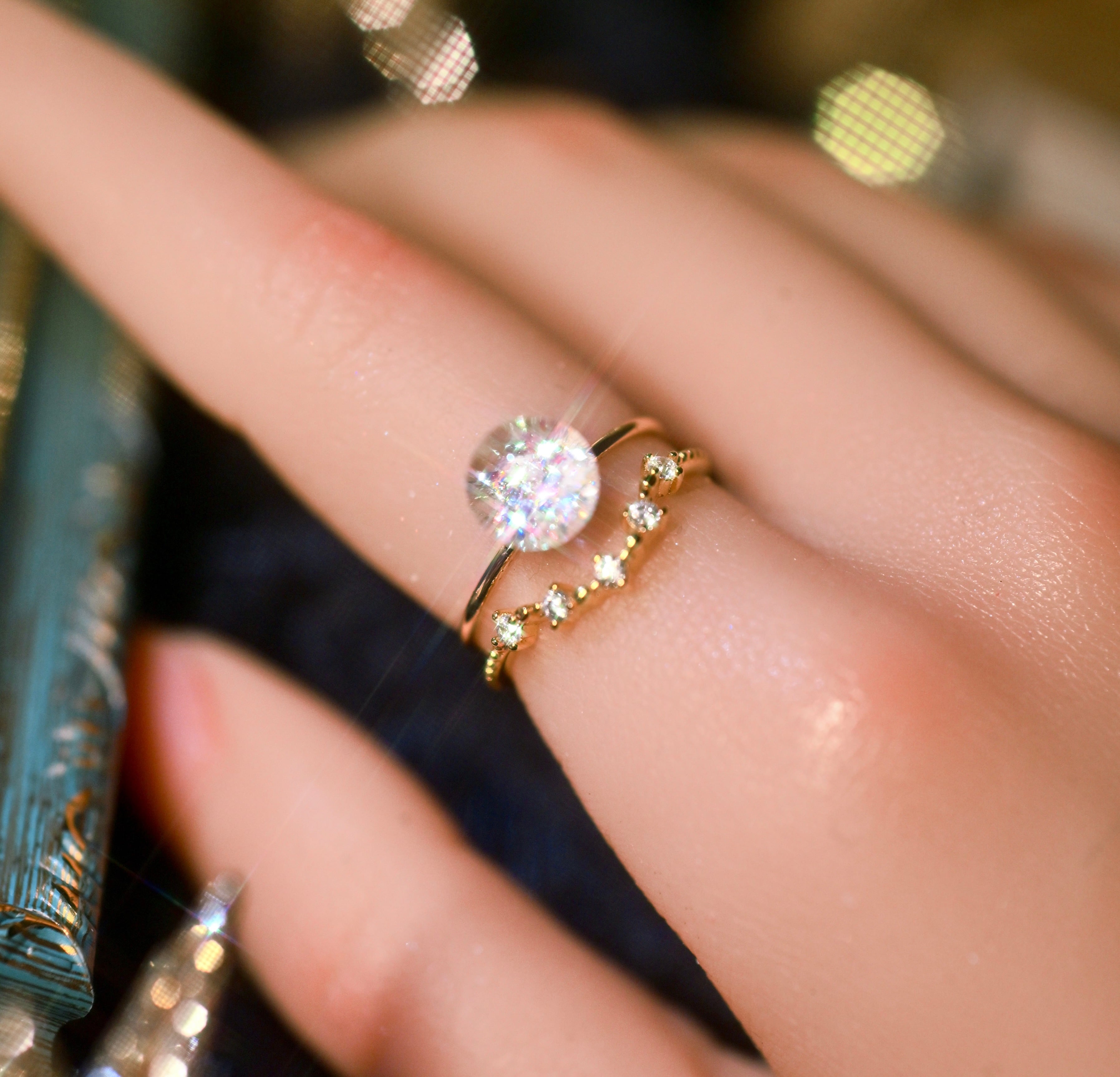 お手持ちの宝石リングとの重ね付けも。